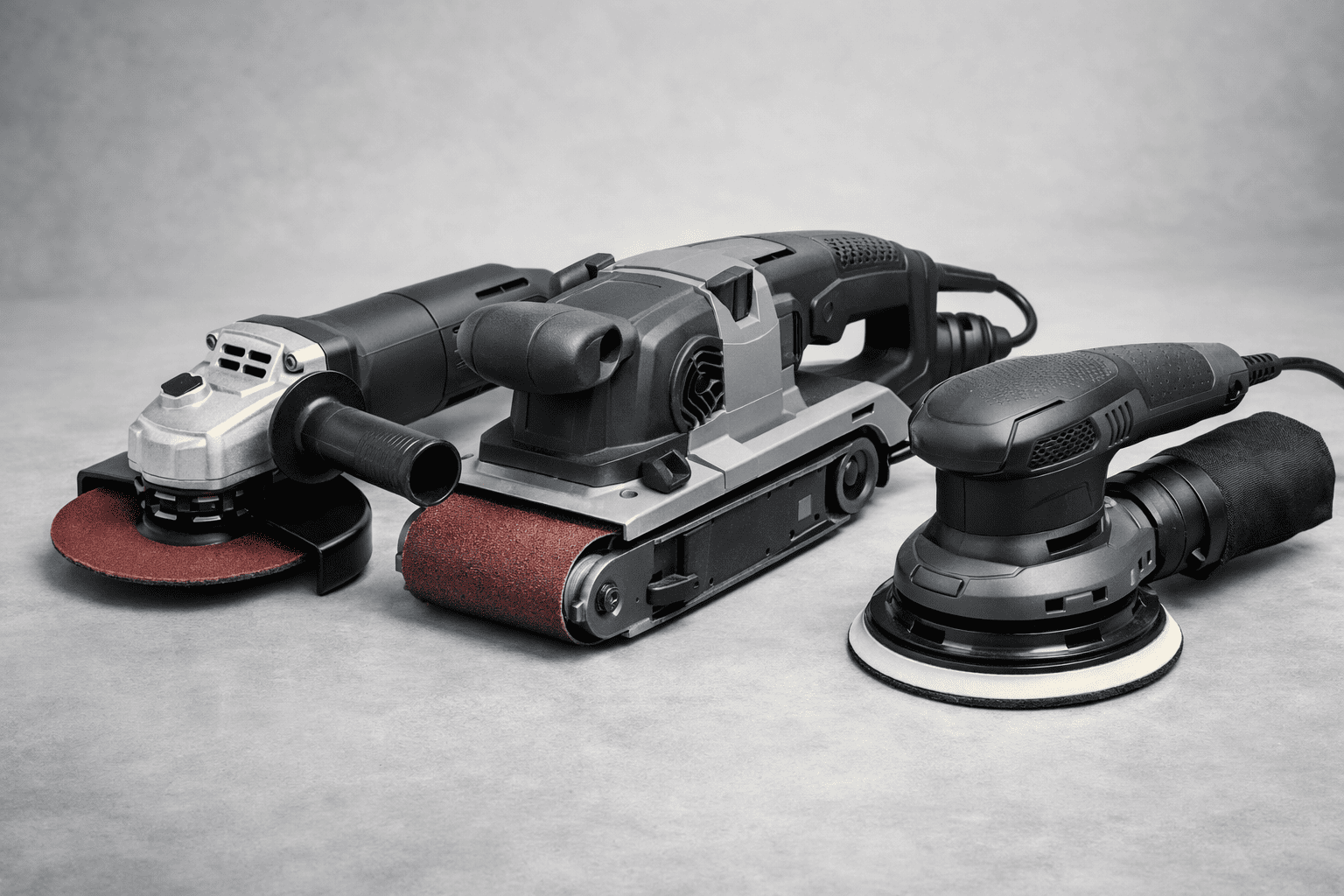 - Ленточные шлифмашины: Идеальны для быстрого съема материала с дерева или металла, выравнивания плоскостей.