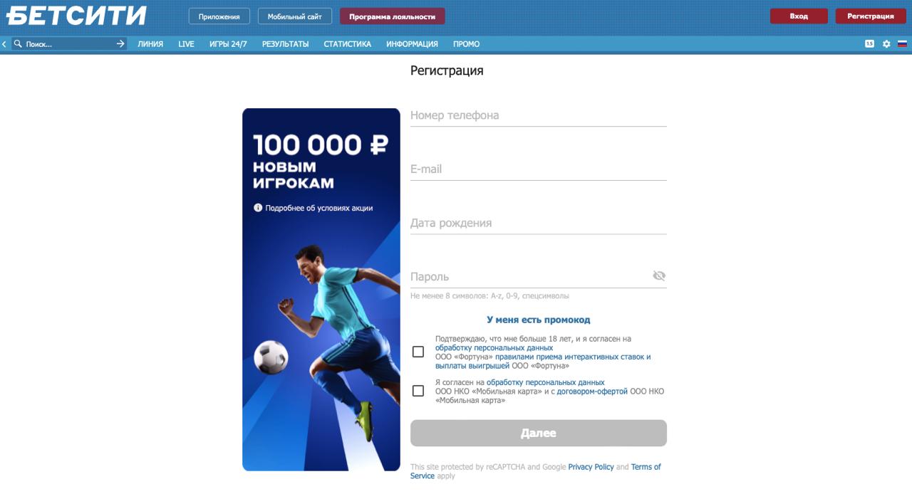 Пошаговая регистрация на официальном сайте betcity