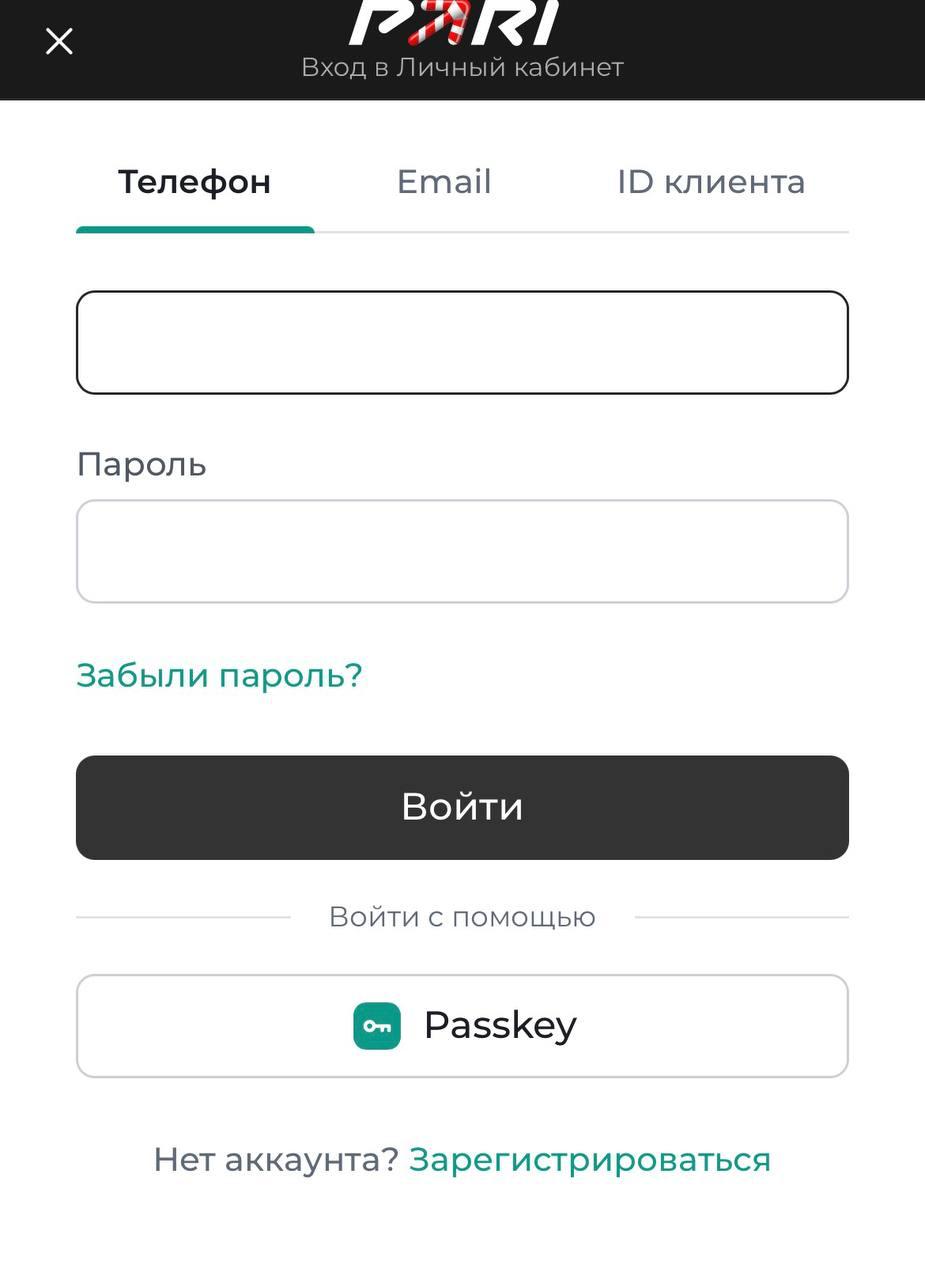 Авторизация в лк Пари через приложение на смартфоне