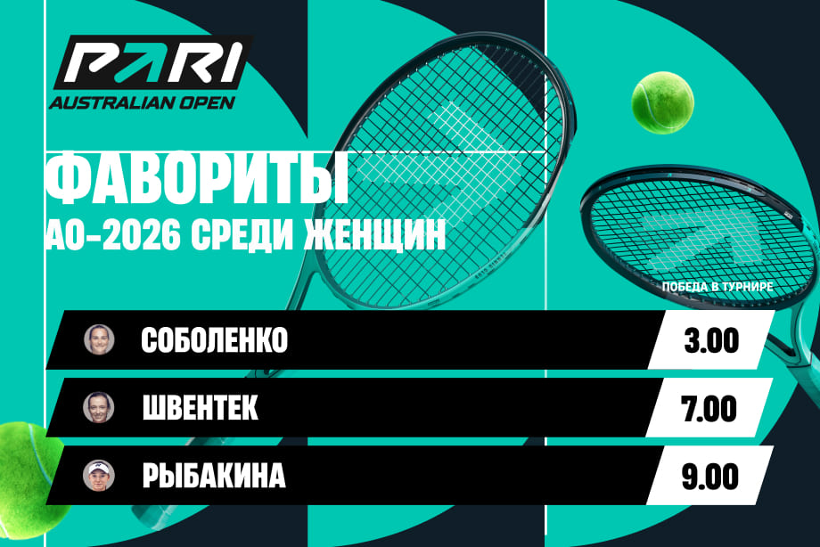 Главным фаворитом Australian Open аналитики считают первую ракетку мира Арину Соболенко. Итоговая победа белорусской теннисистки котируется коэффициентом 3.00, тогда как любой исход, при котором она не станет чемпионкой, оценен в 1.45. 27-летняя Соболенко уже четырежды выигрывала турниры «Большого шлема». Особенно успешно она выступает именно в Мельбурне: победы на Australian Open в 2023 и 2024 годах, а также финал в 2025-м, где она уступила Мэдисон Киз.
